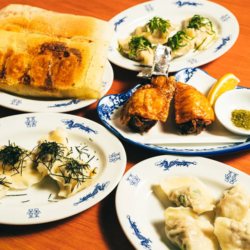 焼き餃子、揚げ餃子、汁なし担々麺など